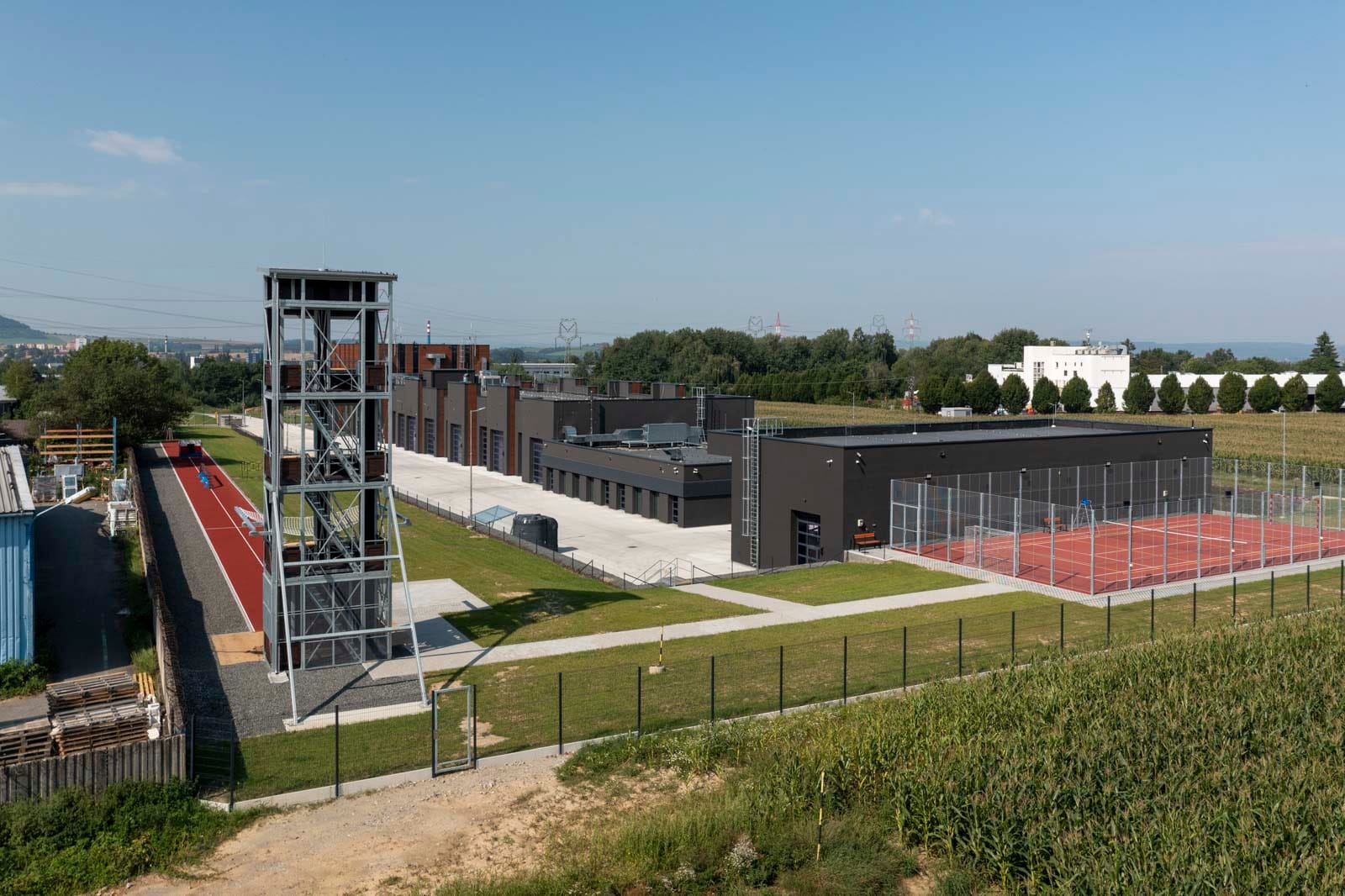 V areálu jsme vybudovali také sportoviště s běžeckou dráhou a cvičnou věž.
