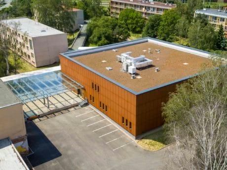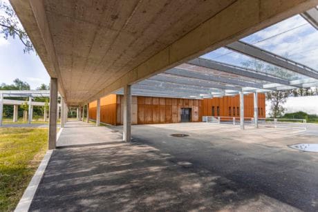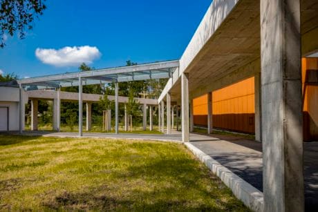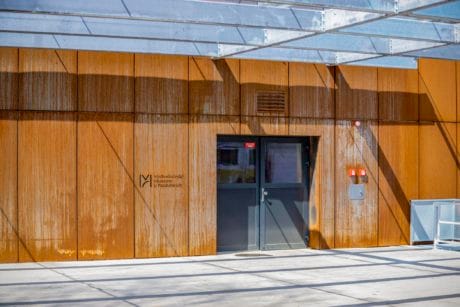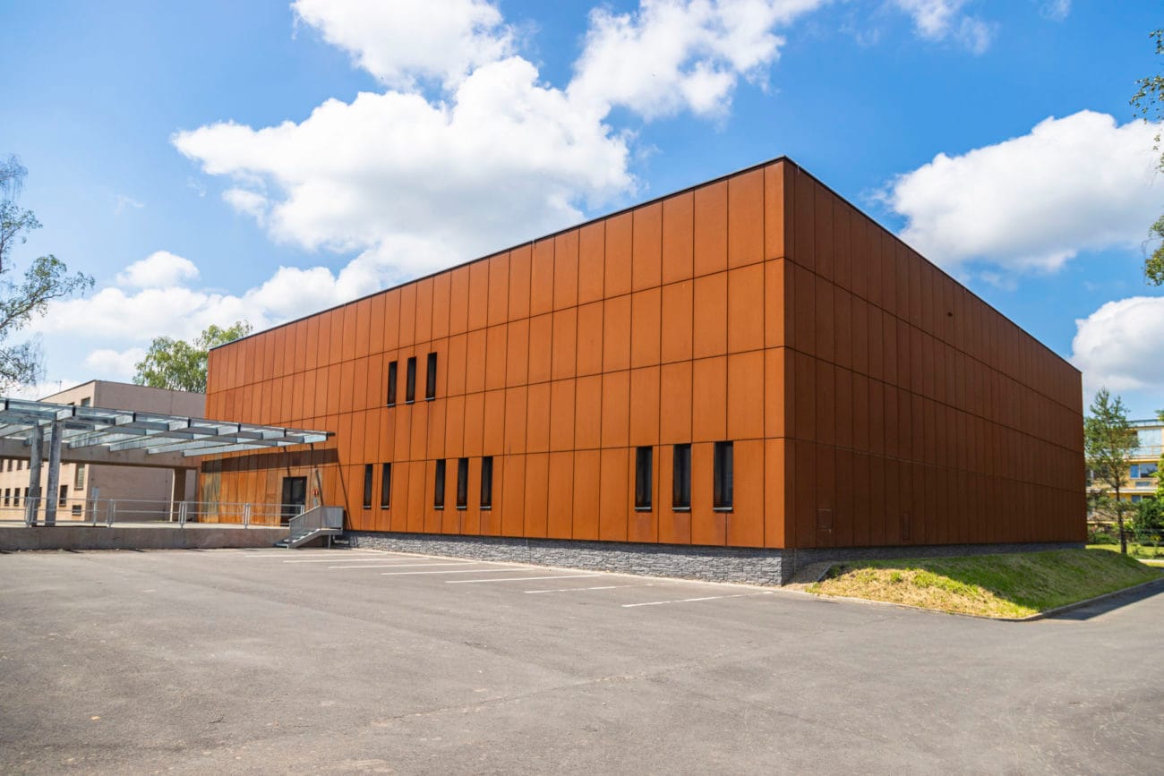 Celkovým záměrem bylo vytvořit dojem nedobytné tvrzi. Toho se podařilo dosáhnout jak pomocí obložení předzvětralým ocelovým obkladem (cortenem), tak absencí jakýchkoliv oken a otvorů ze tří stran budovy. Ve spojovací chodbě jsme naopak vybouráním stěn a oken dosáhli dojmu subtilní parkové kolonády.