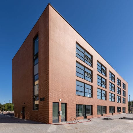 Nová čtyřpodlažní budova je kombinací monolitické, železobetonové konstrukce 1 NP a zděnými nosnými obvodovými stěnami v kombinaci s příčným nosným systémem vyzděným z dutých keramických cihel 2 – 4 NP. Fasáda pak koresponduje s povrchem náměstí a je z keramického obkladového pásku. Přízemí je obloženo cihelným páskem černé barvy a v soklové části je mramorový obklad včetně mramorových parapetních desek. Část domu bude využívána pro komerční účely, ve zbytku vznikly bytové jednotky.