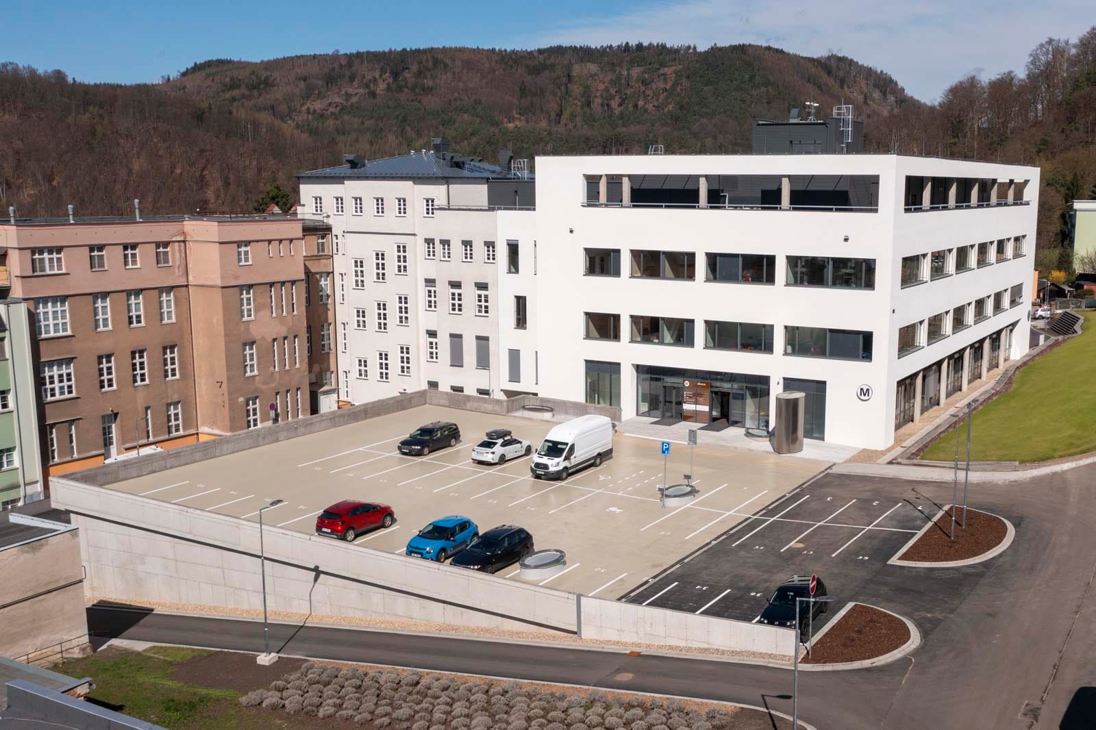 V rámci výstavby jsme v blízkosti nového pavilonu vystavěli dvoupodlažní parkovací dům s celkem 69 parkovacími místy, který bude sloužit jak pro zdravotníky, tak pro veřejnost.