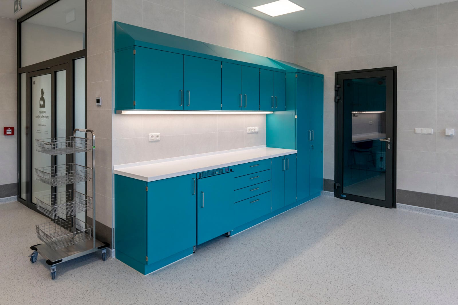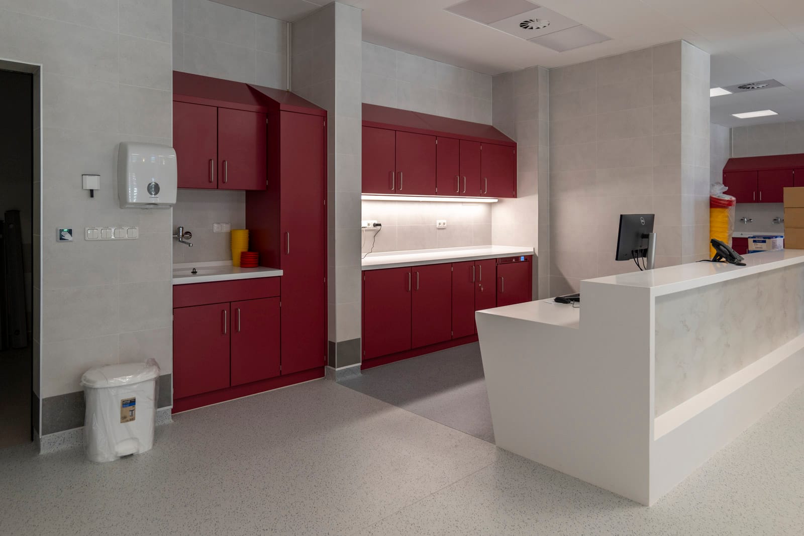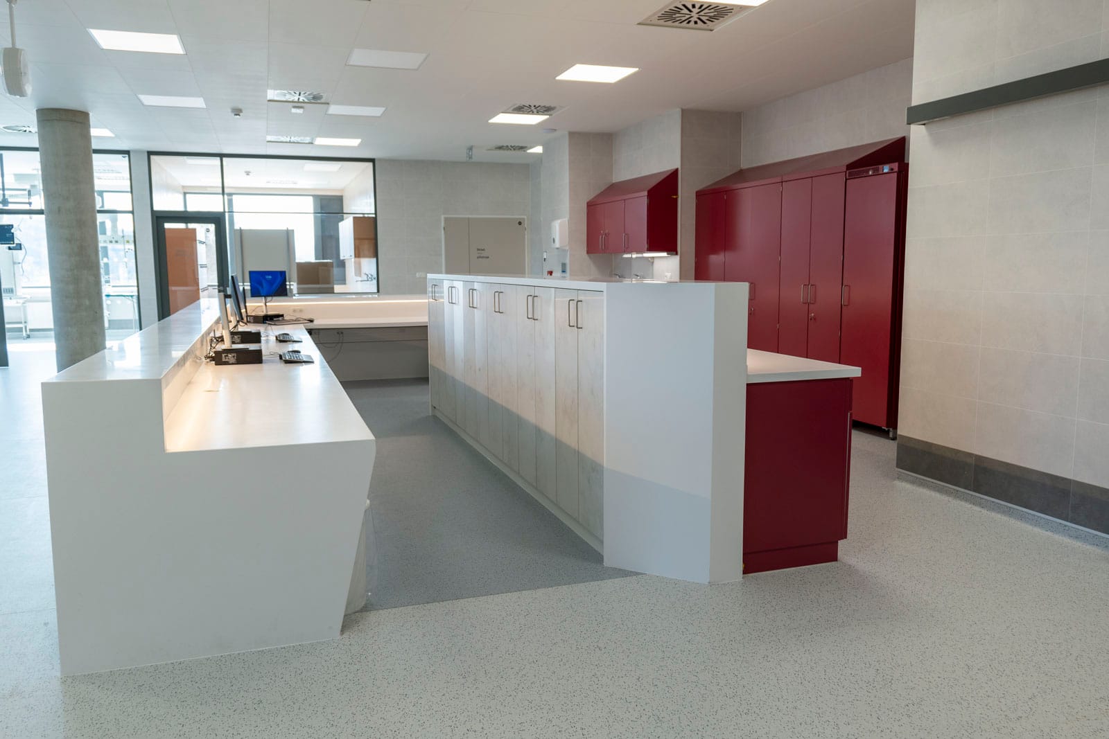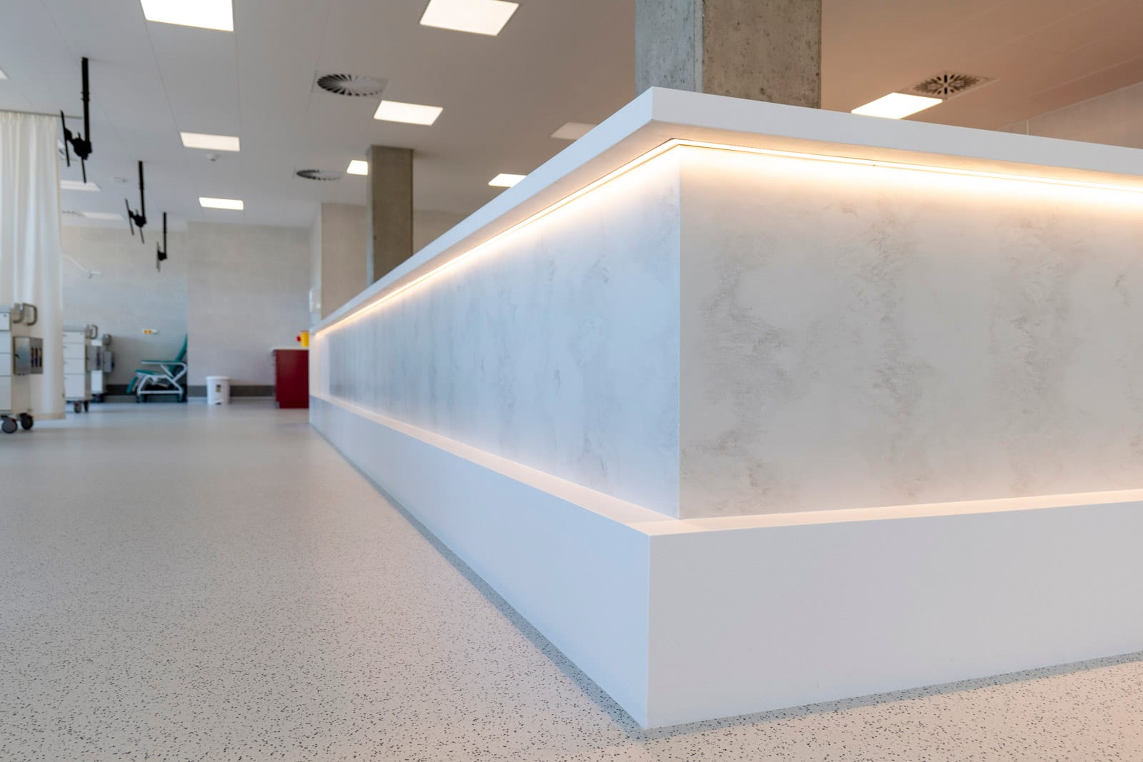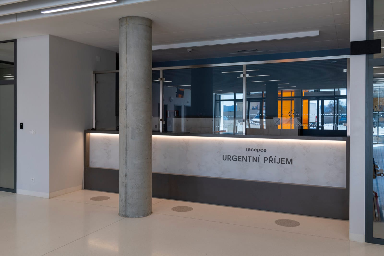 V 1. nadzemním podlaží jsme zbudovali technické zázemí včetně strojovny vzduchotechniky pro společné prostory, elektrické rozvodny pro silnoproudé a slaboproudé rozvody a výměníkové stanice. Také jsou zde umístěny sklady a šatny pro personál nemocnice. Ve 2. nadzemním podlaží najdou návštěvníci urgentní příjem pro nízkoprahovou a vysokoprahovou část a výstup na parkovací dům. 3. nadzemní podlaží pak patří převážně operačním sálům, centrální sterilizaci a pooperační lůžkové části. Ve 4. nadzemním podlaží je umístěno oddělení ARIM – jednotka intenzivní péče s návazností na anesteziologicko-resuscitační oddělení. V severozápadní části tohoto podlaží jsme udělali přípravu pro budoucí výstavbu dětského oddělení. V 5. nadzemním podlaží je pak opět převážně technické zázemí se strojovnami vzduchotechniky pro operační sály a čisté prostory pacientů a strojovna chlazení. Jsou zde ale například i lékařské pokoje. Všechna podlaží jsou propojena dvěma schodišti a čtyřmi výtahy. Střecha pavilonu nad 5.NP je provedena tak, aby umožňovala v budoucnu dostavět heliport a 6.NP je koncipováno jako možný budoucí výstup na střešní část pro transport pacientů z heliportu a pro údržbu nemocnice.