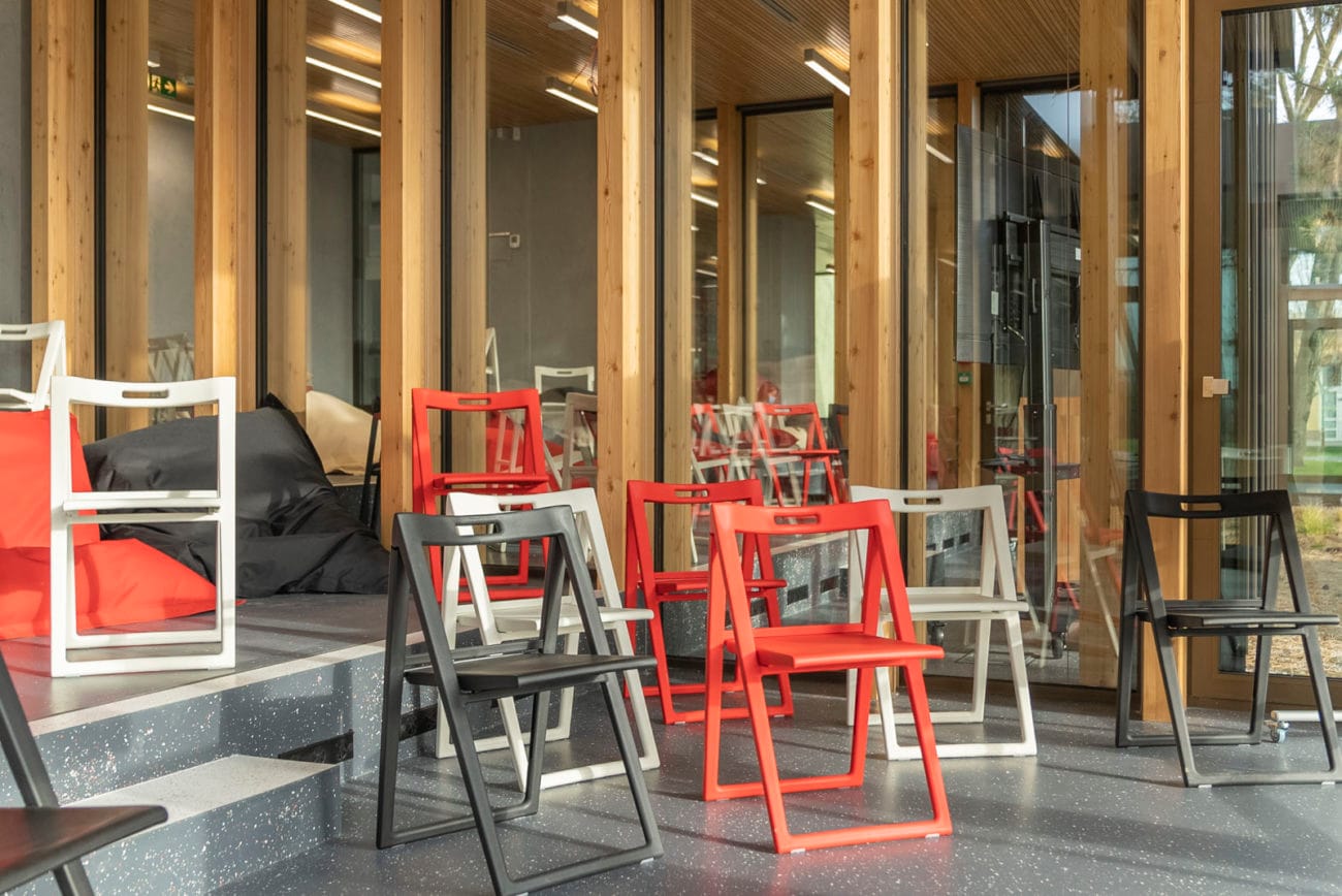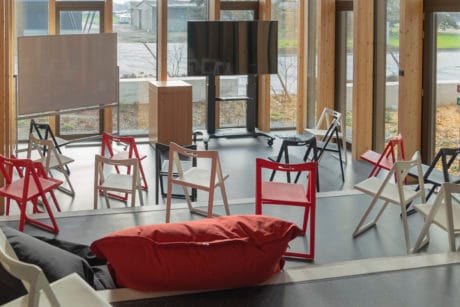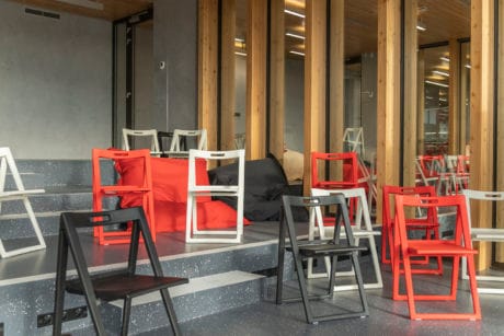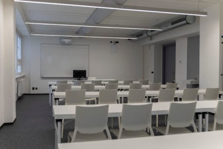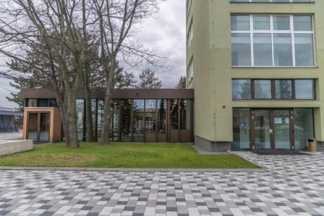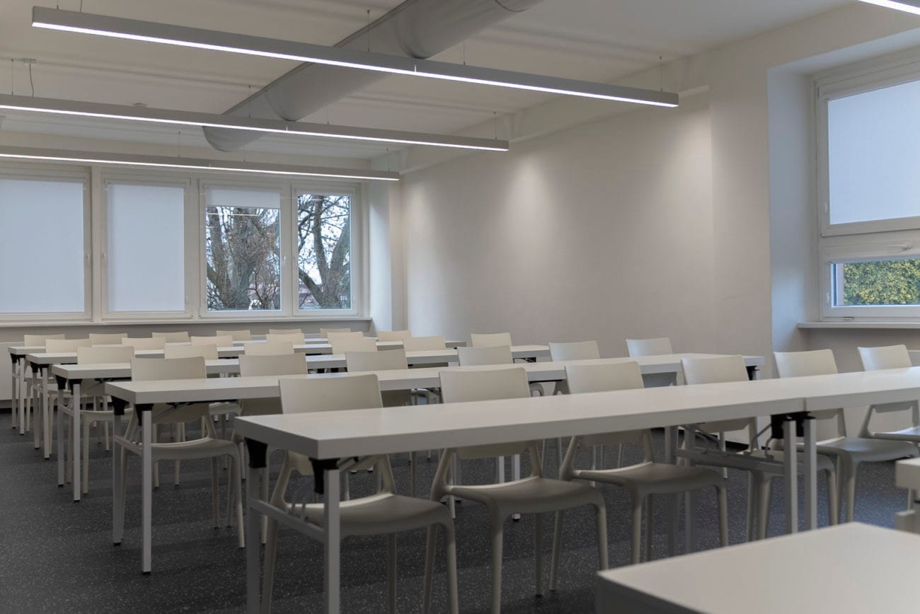Změn se ale dočkaly i další části budovy č. 47. Přestavěli jsme první nadzemní podlaží a křídlo učeben a auly. Fakulta chtěla prostory sloužící studentům zmodernizovat a zkvalitnit. Navíc přibyl i takzvaný co-workový prostor, který studentům umožňuje společně studovat či pracovat na projektech.