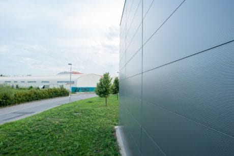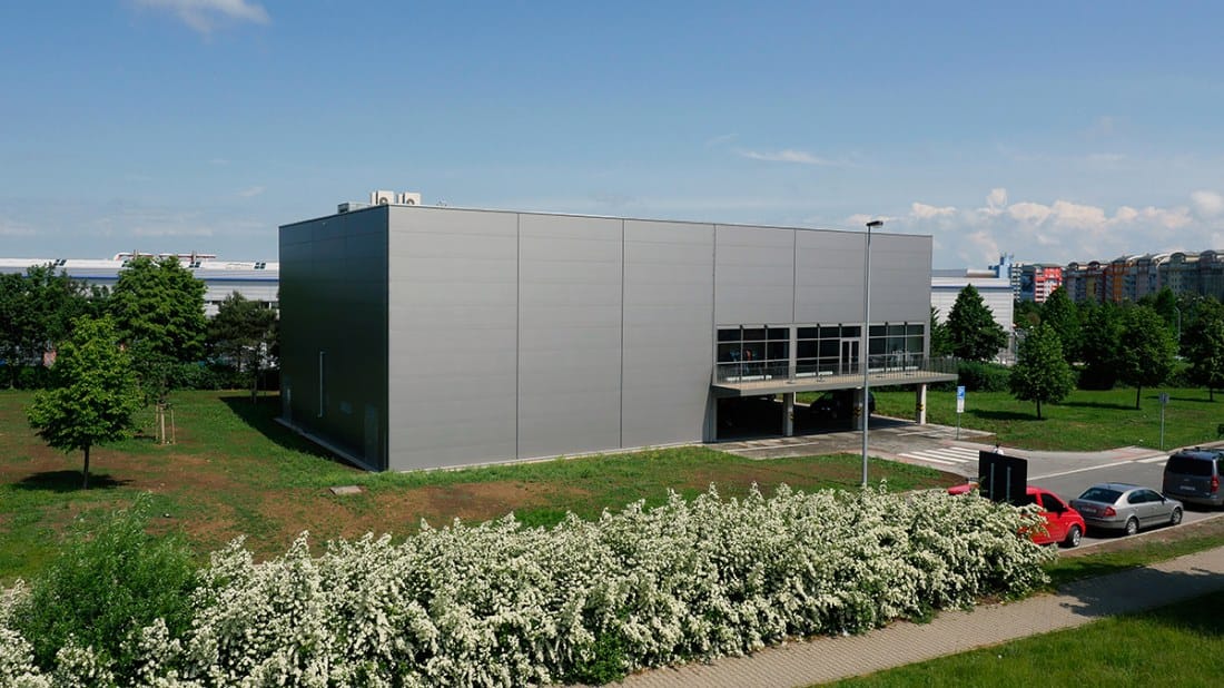 První výzvu, které jsme čelili, představovaly výsledky hydrogeologického průzkumu parcely. Protože v základové vrstvě byly zjištěny jíly a spraše, založili jsme stavbu na pilotách. Základová deska byla opatřena hydroizolačním souvrstvím se skelnou výztuží pro zamezení průniku vlhkosti z podloží. Na pevných základech pak vyrostl elegantně řešený třípodlažní kvádr s proskleným portálem.